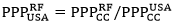 5.1.4. Применяемая методология сопоставлений позволяет пересчитать ППС в любую валюту и рассчитать показатели по отношению к любой стране <1>. В случае, когда единая валюта отличается от доллара США, ППС российского рубля к доллару США рассчитывается как отношение значения ППС российского рубля к значению ППС доллара США по формуле