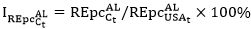 5.1.2. Расчет показателя "Сопоставимый уровень цен (США = 100)" осуществляется по формуле