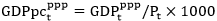 - ВВП по ППС Российской Федерации в текущих ценах за год t, млрд долларов США;