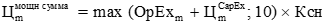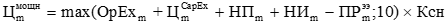 OpExm - значение удельных затрат на эксплуатацию генерирующего объекта, равное цене на мощность, определенной для ценовой зоны, в которой расположен генерирующий объект, по итогам конкурентного отбора мощности, для соответствующего года поставки, уменьшенное на коэффициент 1,2, а также уменьшенное в 2026 - 2030 годах на коэффициент 1,0341 (рублей/МВт в месяц);