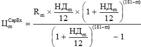 Rm - не возмещенная по состоянию на начало месяца m часть капитальных затрат на строительство генерирующего объекта (рублей/МВт);