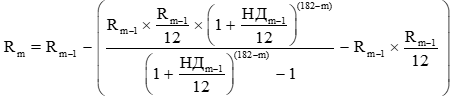 6. Не возмещенная по состоянию на начало месяца m, отличного от первого (m > 1), часть капитальных затрат на строительство генерирующего объекта (Rm) определяется по формуле: