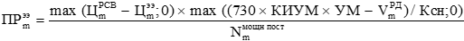 - расчетная величина прибыли от продажи электрической энергии, определяемая для месяца m в соответствии с пунктом 9 настоящей методики (рублей/МВт в месяц);