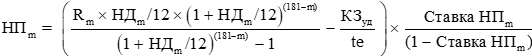 НПm - удельная расчетная величина расходов, связанных с уплатой налога на прибыль организаций, определяемая с учетом особенностей, предусмотренных договором о присоединении к торговой системе оптового рынка, исходя из суммы уплаченного налога на прибыль организаций, рассчитанной исходя из доли дохода от продажи электрической энергии и мощности на оптовом рынке с использованием соответствующего генерирующего объекта в доходе, полученном поставщиком мощности за налоговый период, и (или) информации об удельной величине расходов, связанных с уплатой налога на прибыль организаций, представленной поставщиком мощности в соответствии с абзацем шестым пункта 115.4 Правил оптового рынка, которая с 1-го по 180-й месяц поставки мощности не может превышать величину, определяемую в соответствии с пунктом 11 настоящей методики (рублей/МВт в месяц);