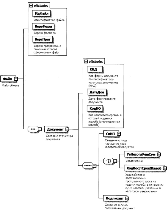 1. Настоящий формат описывает требования к XML-файлам (далее - файл обмена) передачи уведомления о несогласии с решением вышестоящего налогового органа по жалобе на действия налогового органа по исчислению суммы соответствующего налога, указанной в налоговом уведомлении (далее - уведомление), ходатайства о восстановлении пропущенного срока на подачу жалобы в отношении сумм налогов, указанных в налоговом уведомлении, ходатайства о восстановлении пропущенного срока на представление уведомления о несогласии, предусмотренных пунктами 8 и 9 статьи 48 Налогового кодекса Российской Федерации (далее - Кодекс), в налоговый орган в электронной форме.