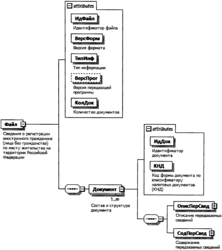 | Сведения о документе, подтверждающем право иностранного гражданина (лица без гражданства) на проживание на территории Российской Федерации | ДокРегИнРФ | С | О | Типовой элемент <СвДокТип>. Состав элемента представлен в таблице 4.7 |