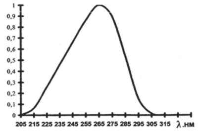 2.3. Антимикробным действием обладает бактерицидное УФ-излучение в диапазоне от 205 до 315 нм. Наибольшей эффективностью обладает бактерицидное УФ-излучение с длиной волны 265 нм.