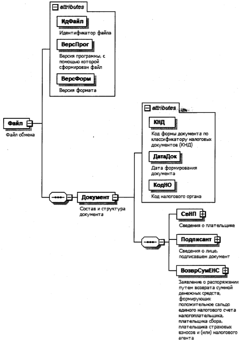 Заявление о распоряжении путем возврата суммой денежных средств, формирующих положительное сальдо единого налогового счета налогоплательщика, плательщика сбора, плательщика страховых взносов и (или) налогового агента (ВозврСумЕНС)