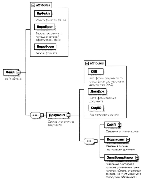 XML-схема файла обмена приводится отдельным файлом и размещается на официальном сайте Федеральной налоговой службы в информационно-телекоммуникационной сети "Интернет".