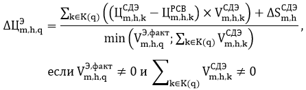 г) при применении гарантирующим поставщиком нерегулируемых цен на электрическую энергию (мощность), поставляемую потребителю (q), осуществляющему расчеты по третьей - шестой ценовым категориям, в отношении которого гарантирующим поставщиком заключены и зарегистрированы на оптовом рынке свободные договоры в соответствии с подпунктом "б" настоящего пункта, для предельного уровня нерегулируемых цен на электрическую энергию (мощность) в объемах поставки согласно обязательствам гарантирующего поставщика о приобретении на оптовом рынке электрической энергии в интересах потребителя ставка за электрическую энергию предельного уровня нерегулируемой цены, применяемой в час (h) расчетного периода (m) к фактическому объему покупки электрической энергии, поставляемому согласно обязательствам гарантирующего поставщика о приобретении на оптовом рынке электрической энергии в интересах потребителя (q), в соответствии с договором о присоединении к торговой площадке, рублей/МВт·ч, корректируется с учетом знака на величину (), рассчитываемую гарантирующим поставщиком индивидуально для каждого потребителя (q) по формуле:
