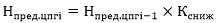 Предельные размеры оптовых надбавок и (или) предельные размеры розничных надбавок для последующих ценовых подгрупп (Нпред.цпгi) определяются по формуле: