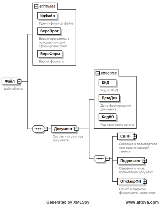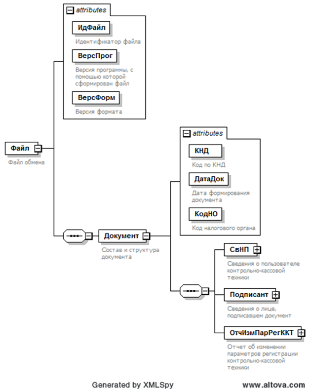 XML схема файла обмена приводится отдельным файлом и размещается на официальном сайте Федеральной налоговой службы.