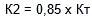 В случае если при определении коэффициента К2 его значение получается более или менее соответственно 1 или 0,005, то устанавливается значение коэффициента К2 равным соответственно 1 или 0,005.