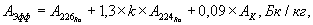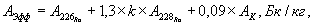 АЭФФ = ARa + 1,3 x ATh + 0,09 x АК, Бк/кг,