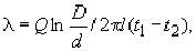 где t1 и t2 - температура на поверхности трубы и изоляции, °С;
