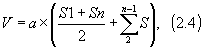 Если расстояния между сечениями одинаковые, формула имеет вид: