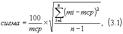 33. При взвешивании всех транспортных сосудов вычисляется коэффициент вариации сигма (%) массы горных пород в одном сосуде по формуле: