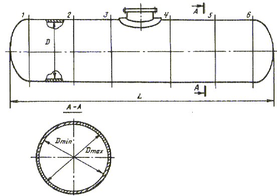 Эскиз N 1 к разделу "6. Карта измерений корпуса сосуда"