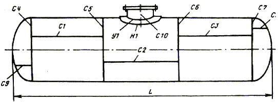 Примечание. Все участки сварных швов, подвергаемых контролю, в том числе места пересечения швов, должны быть обозначены на схеме.