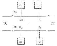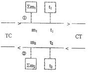 m1 и m2 - массовый расход теплоносителя, соответственно в подающем и обратном трубопроводах, т/ч;