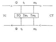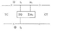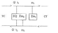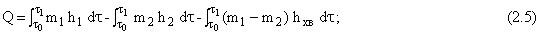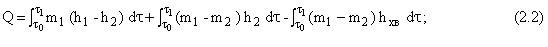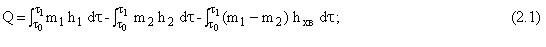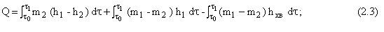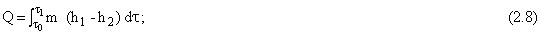 2.6. По формулам (2.1...2.3; 2.5...2.7 и 2.9) измеряют величины Q; Qед с вычитанием из них тепловой энергии холодной воды, представленной интегралами, содержащими сомножитель hхв при условии, что расход холодной воды равен разности расходов (m1 - m2).