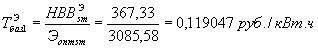 = 6,10833 / 1358,7 = 0,44957 коп./кВт.ч.