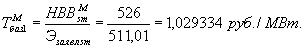 = 50,68 / (276,68 x 12) = 0,01526 млн. руб. в мес./МВт.