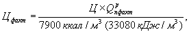 - фактическая теплота сгорания в ккал/м3 (кДж/м3);