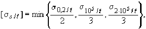8.5.2. Допускаемые напряжения для шпилек, изготовленных из марок сталей, не указанных в табл. 8.2, или по которым имеются специальные технические требования и данные по гарантированным характеристикам кратковременной и длительной прочности, следует определять по формуле