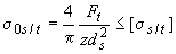 Допускаемые напряжения металла шпилек с одинаковыми номинальными диаметрами резьбы и гладкой части в условиях гидравлического испытания принимаются равными