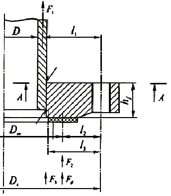увеличить значение h_f в раз, при этом 2h_f должно быть не более чем значение выражения Df - D - 2s1, если расчетные напряжения по сечению А-А превышают допускаемые более чем на 5%. Расчет плоского фланца при новом значении h_f следует повторить начиная с п. 8.8.2.2 до выполнения условия прочности.