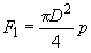 где - усилие от действия давления на внутренний участок тарелки фланца и мембраны, Н;