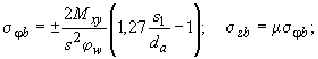 Напряжения от действия термоупругого момента Mxy в расчетных точках оребренной трубы определяются согласно приложению 1.