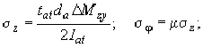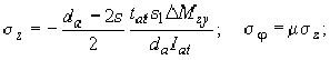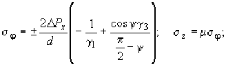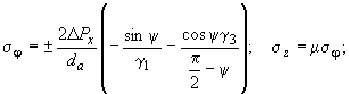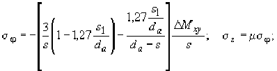 Осевые и окружные (поперечные) напряжения в оребренной трубе определяются по формуле