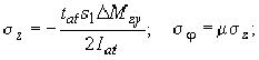 6.1. При включении и выключении горелок и поясов горелок, а также при повышении и снижении нагрузки котла в районе горелок возникают температурные напряжения. Осевые и окружные (поперечные) напряжения в расчетных точках оребренной трубы определяются по формуле
