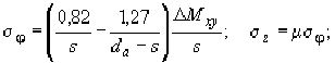 2.1. Средние радиальные, окружные и осевые напряжения в расчетных сечениях оребренной трубы определяются по формулам: