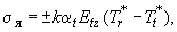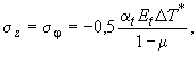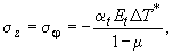 2.5. Осевые напряжения в оребренной трубе, возникающие от разности среднеинтегральных температур трубы Т*т и ребра Т*р, определяются по формуле