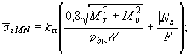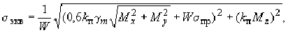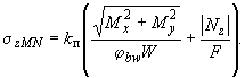Напряжение o_пр и т вычисляются соответственно по формулам (3) и (4), а напряжение o_zMN - по формуле