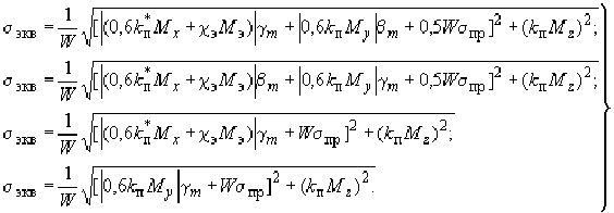 Величины, входящие в приведенные формулы, определяются так же, как при расчете по формулам (6). Величина Mэ определяется при рабочем давлении.