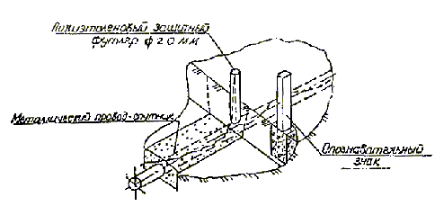Вывод провода-спутника над поверхностью земли должен предусматриваться в специальных контрольных точках, располагаемых на расстояниях не более 4,0 км друг от друга (рис. 1).