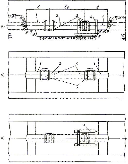 прокладка труб мерной длины в стальном футляре;