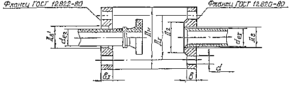 2. Количество отверстий диаметром d составляет: для фланцев Ду от 25 до 100 мм - 4, для фланцев Ду 150 и 200 мм - 8 шт.