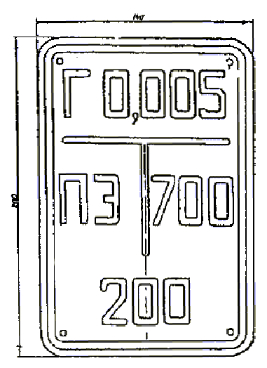 На знак наносятся надписи, выполняемые шрифтом 30-Пр3 ГОСТ 26.020-80: