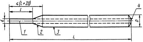 1 - стержень; 2 - участок перехода; 3 - покрытие; 4 - контактный торец без покрытия