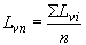 где L_vn- средний уровень виброскорости на данном образце испытуемой спецобуви для всех испытателей, дБ; L_vi- уровень виброскорости измерений на данном образце для i-го испытателя, дБ; n>= 3 - число испытателей;