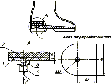 Конструкция подпятника, способ крепления на нем вибропреобразователя и установка подпятника в обуви приведены в приложении 2.