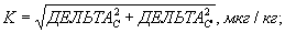 ДЕЛЬТА(2)_C + ДЕЛЬТА(2)_C' - абсолютные значения погрешности измерений для исходной пробы и пробы с добавкой, соответственно, мкг/кг;