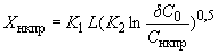 где m - масса газа или паров ЛВЖ, поступающих в объем помещения в соответствии с разделом 3, кг;. Дельта - допустимые отклонения концентрации при задаваемом уровне значимости , приведенные в таблице П1; X_нкпр, Y_нкпр, Z_нкпр - расстояния по осям X, Yи Z от источника поступления газа или пара, ограниченные нижним концентрационным пределом распространения пламени соответственно, м; рассчитываются по формулам (10-12) приложения; L, S - длина и ширина помещения соответственно, м; F - площадь пола помещения, м2; U- подвижность воздушной среды, м·с(-1); C_н - концентрация насыщенных паров при расчетной температуре t_p, °С, воздуха в помещении, % (об.).