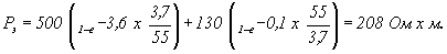 Пусть Р_1=500 Ом х м; Р_2=130 Ом х м; h=3,7 м; =55 мм.