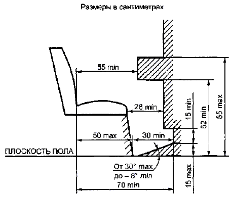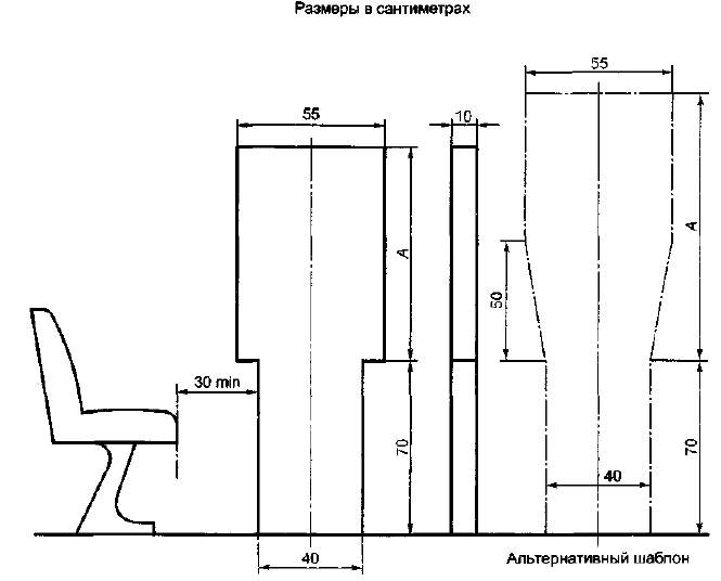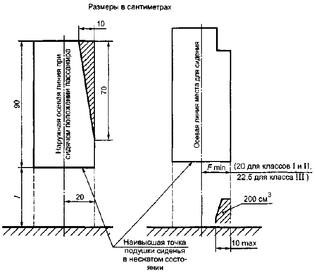 2.13.1. пространство шириной 30 см перед любым сиденьем;